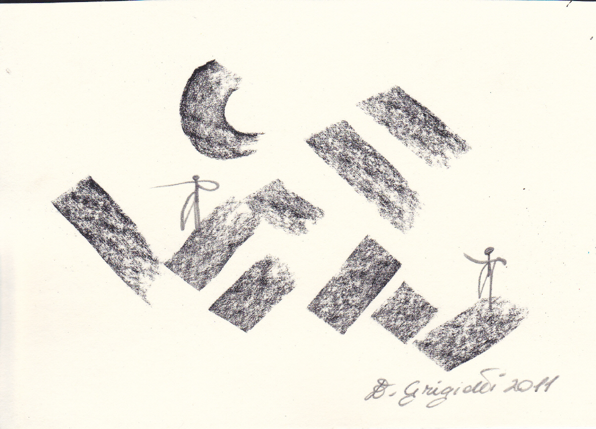 | Grigiotti, Eleonora (Köln) | Arbeit aus der Reihe "little man" (Bleistift, Kohle, Karton) | http://www.grigiotti.de |