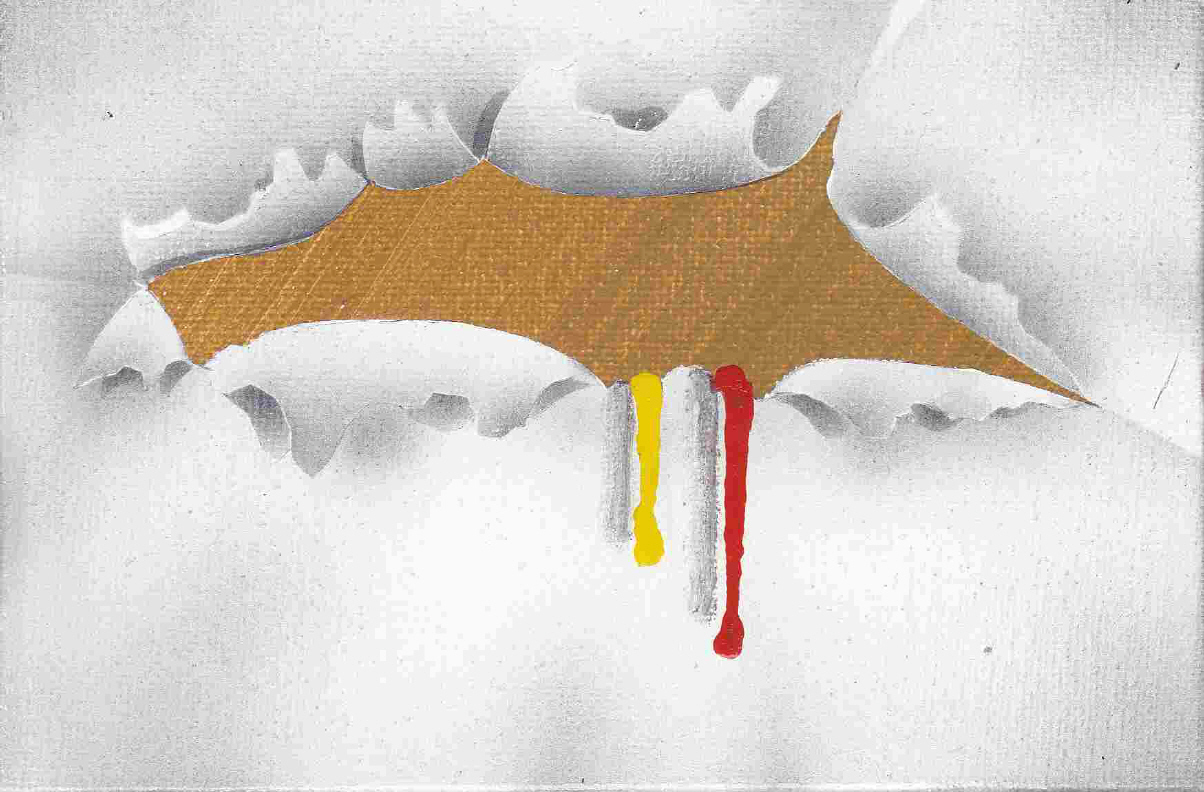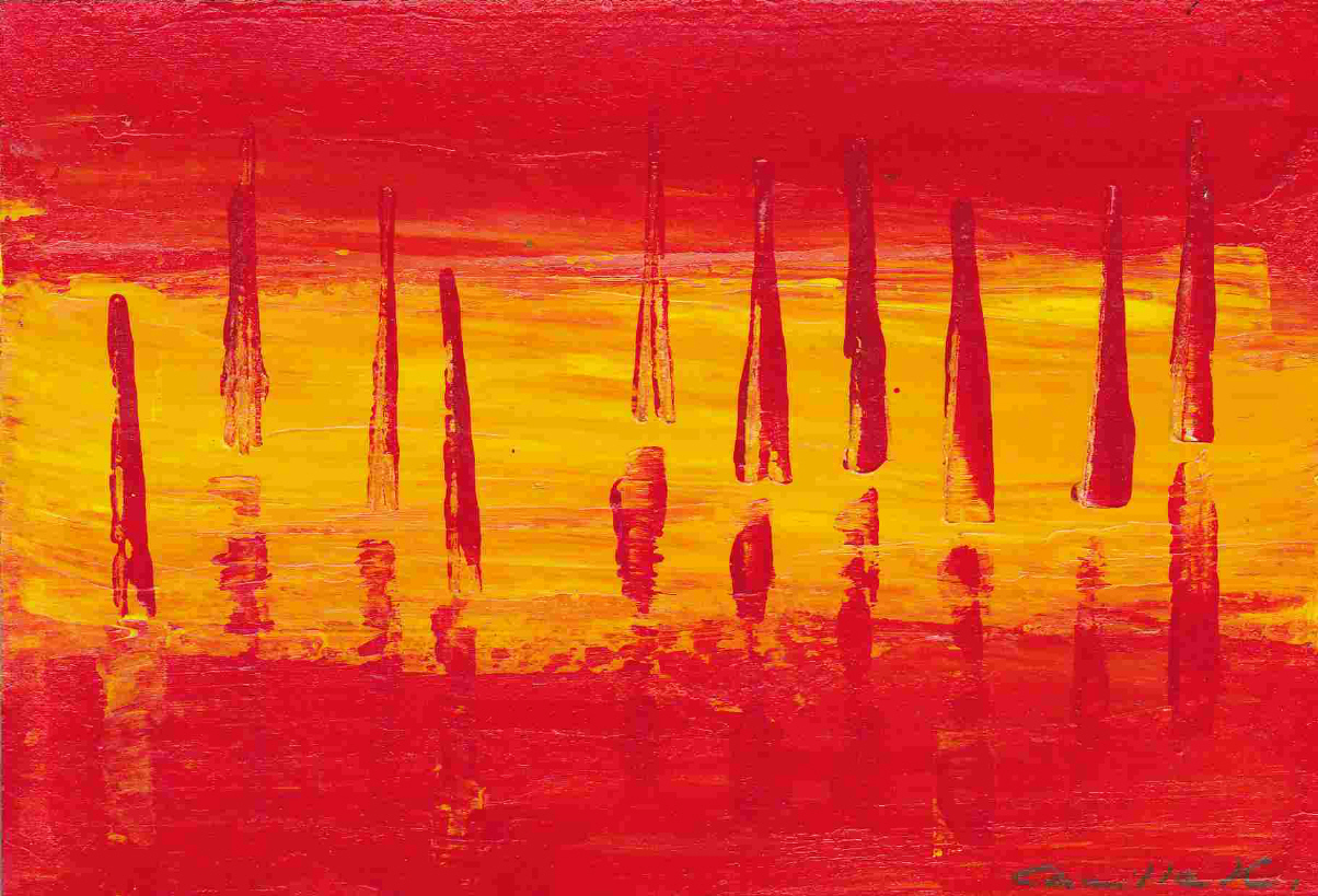 | Marxen, Nina (Köln) | Rot im Sturm – gestoppt und mitgerissen (Mischtechnik auf Karton) | http://www.aufgemalt.de |